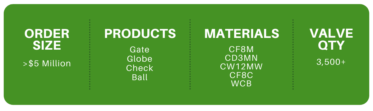 Due to Ladish’s ability to (i) meet required specifications, (ii) design & manufacture custom engineered valves, and (iii) meet the accelerated lead times, we were awarded the valve portion of a large renewable diesel project. Over $5 million in gate, globe, check and ball valves in materials ranging from carbon to duplex and nickel alloys were furnished on time after undergoing strenuous NDE testing.